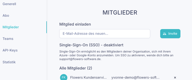 Als Administrator können Sie Mitglieder bei Flowers verwalten: