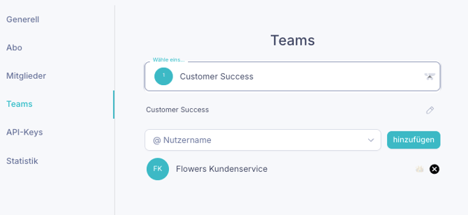 Über das jeweilige Team können Sie hier Mitglieder hinzufügen oder entfernen.