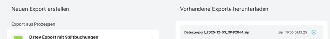 Sollte Ihr Prozess mehrere DATEV-Mandanten beinhalten, muss pro Mandant ein Export gezogen werden.