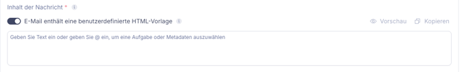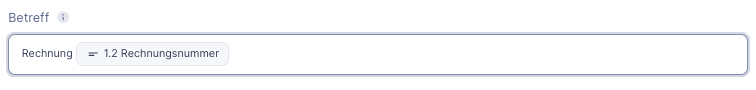 Hier können Sie den Betreff der Mail angeben. Auch hier können Sie einen statischen Text eingeben oder dynamische Werte, indem Sie Aufgaben mit dem '@' Zeichen verknüpfen: