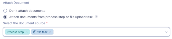 Wählen Sie nur einen Prozessschritt der mehrere Dokumente gespeichert, werden alle inkludiert, d.h. alle in einem Prozessschritt gespeicherten Dokumente werden automatisch an die E-Mail angehängt.