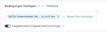 In einigen Fällen ist die Aufgabe, die die DATEV-E-Mail-Adresse enthält, ausgeblendet, aber gleichzeitig als Bedingung zum Auslösen einer Automatisierung hinterlegt. Stellen Sie daher sicher, dass die Automatisierung auch auf ausgeblendete Aufgaben zugreifen kann.