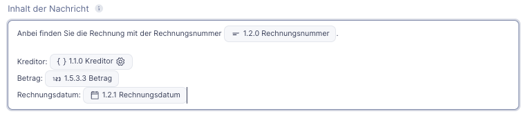 Nun können Sie noch den Inhalt der Nachricht festlegen. Auch hier können Sie statischen & dynamischen Text miteinander verknüpfen.