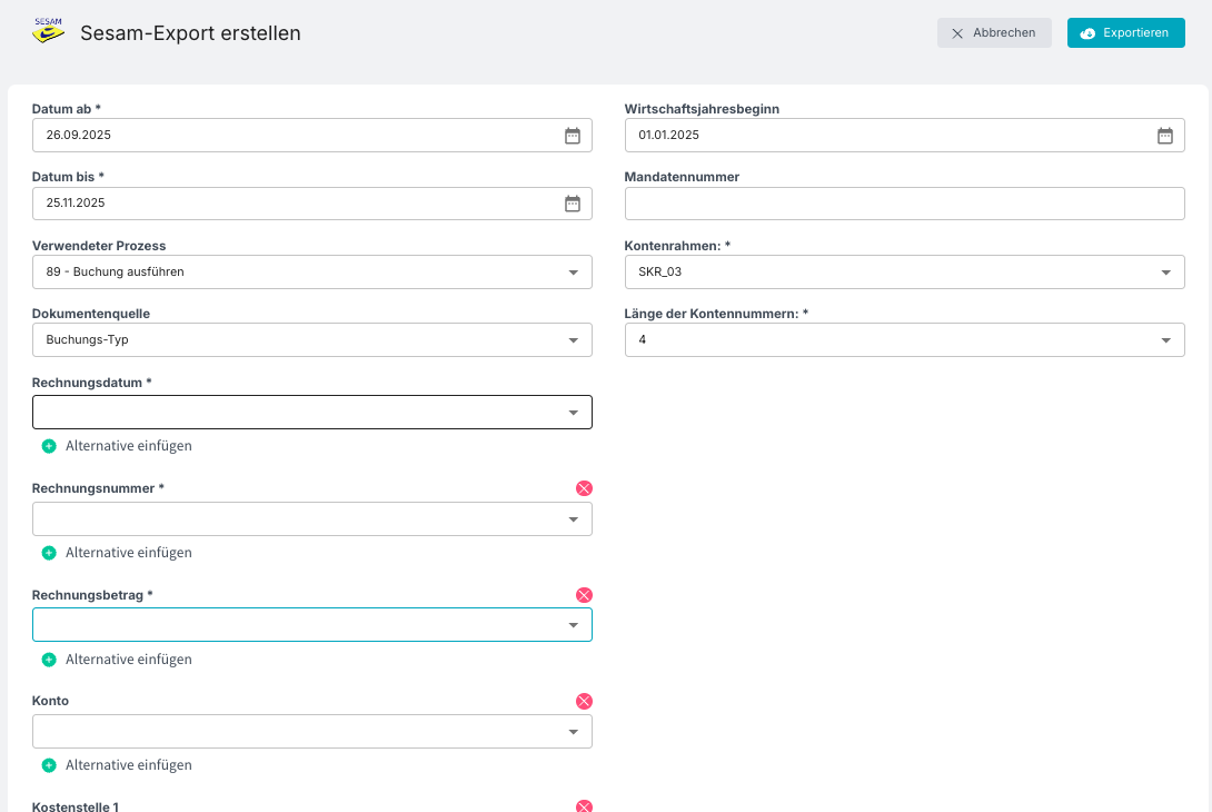 Beim Sesam-Export können Sie einen Export für das Tool "Sesam" erstellen.